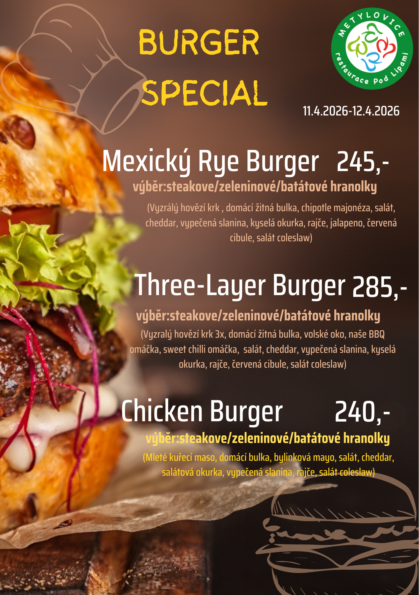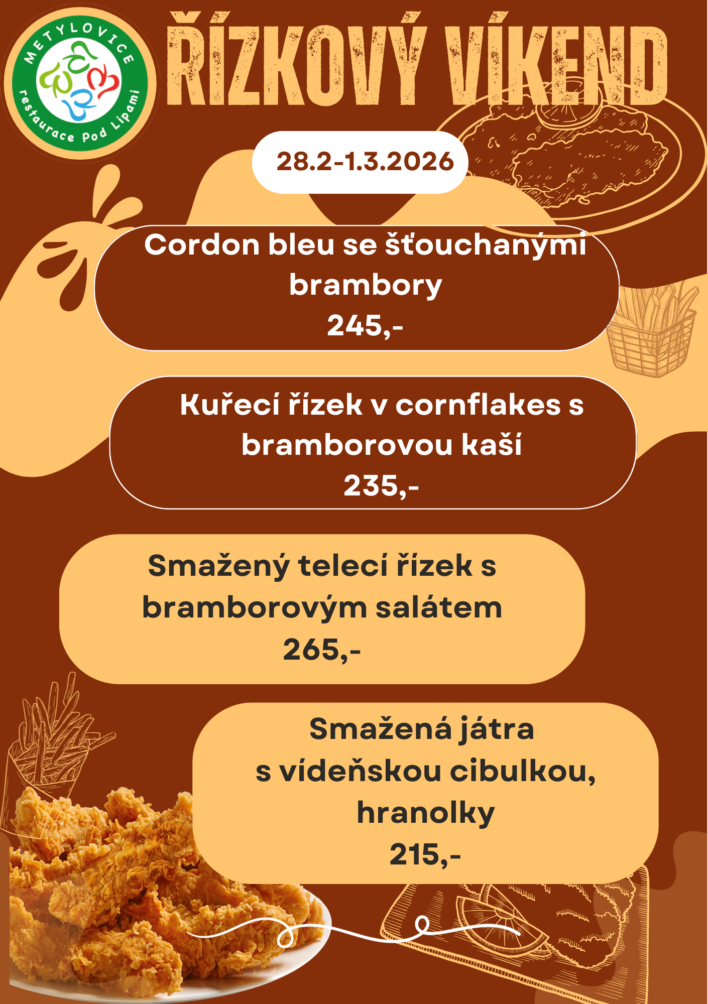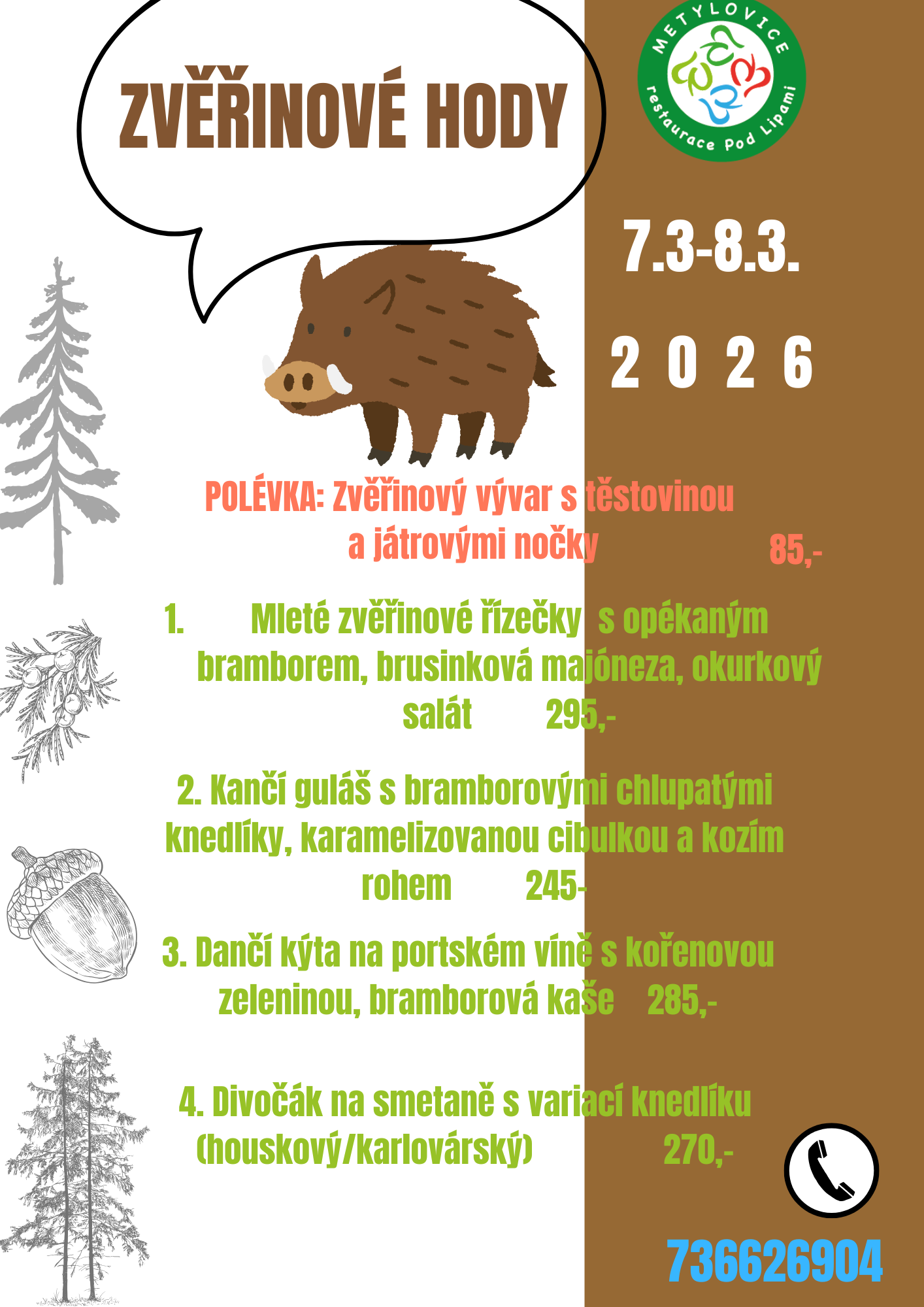 denní a víkendové menu, rauty, rodinné oslavy, svatby, školení, promoce, smuteční hostiny, zajištění kulturních akcí, rozvoz jídla a hostů