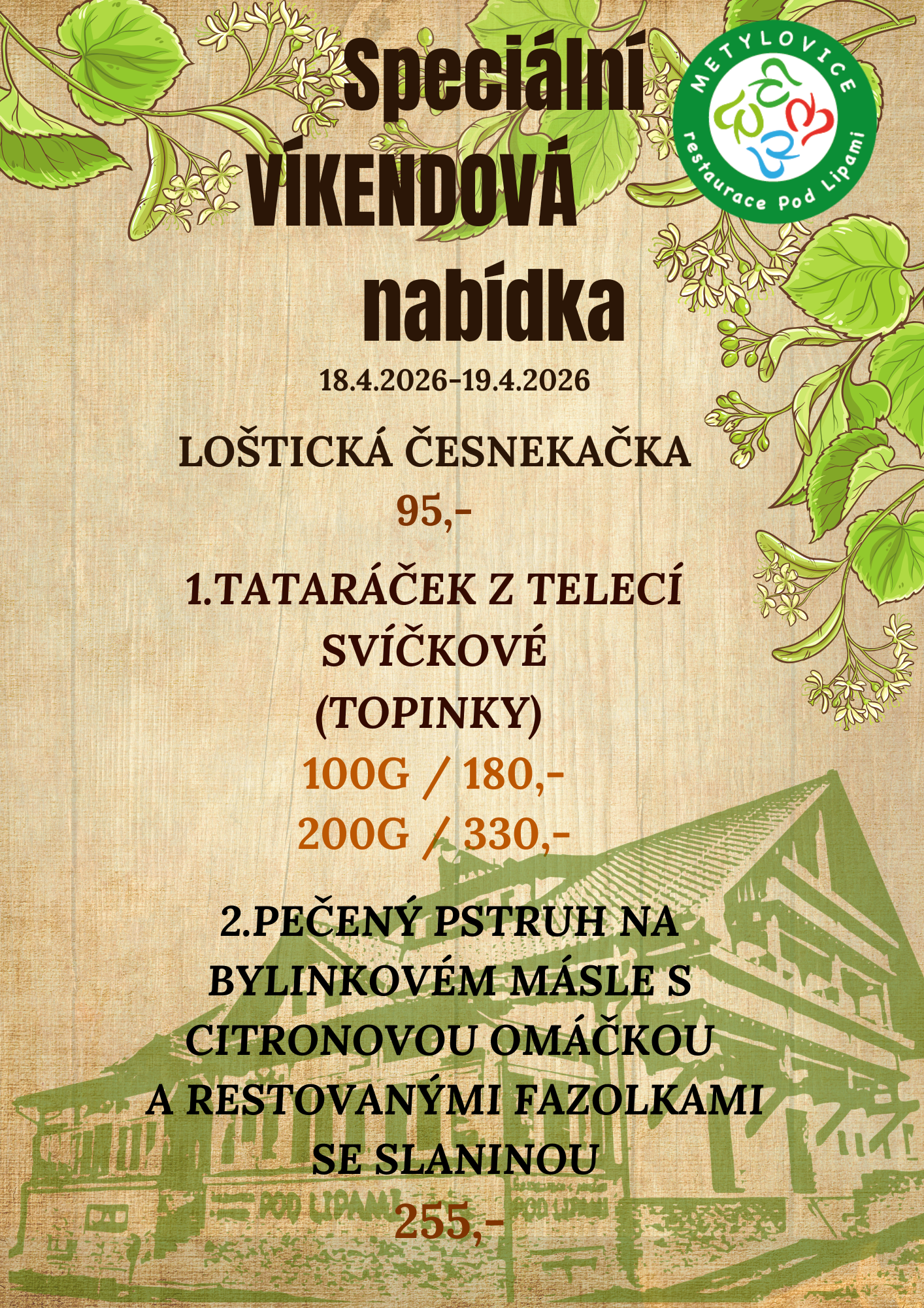 denní a víkendové menu, rauty, rodinné oslavy, svatby, školení, promoce, smuteční hostiny, zajištění kulturních akcí, rozvoz jídla a hostů