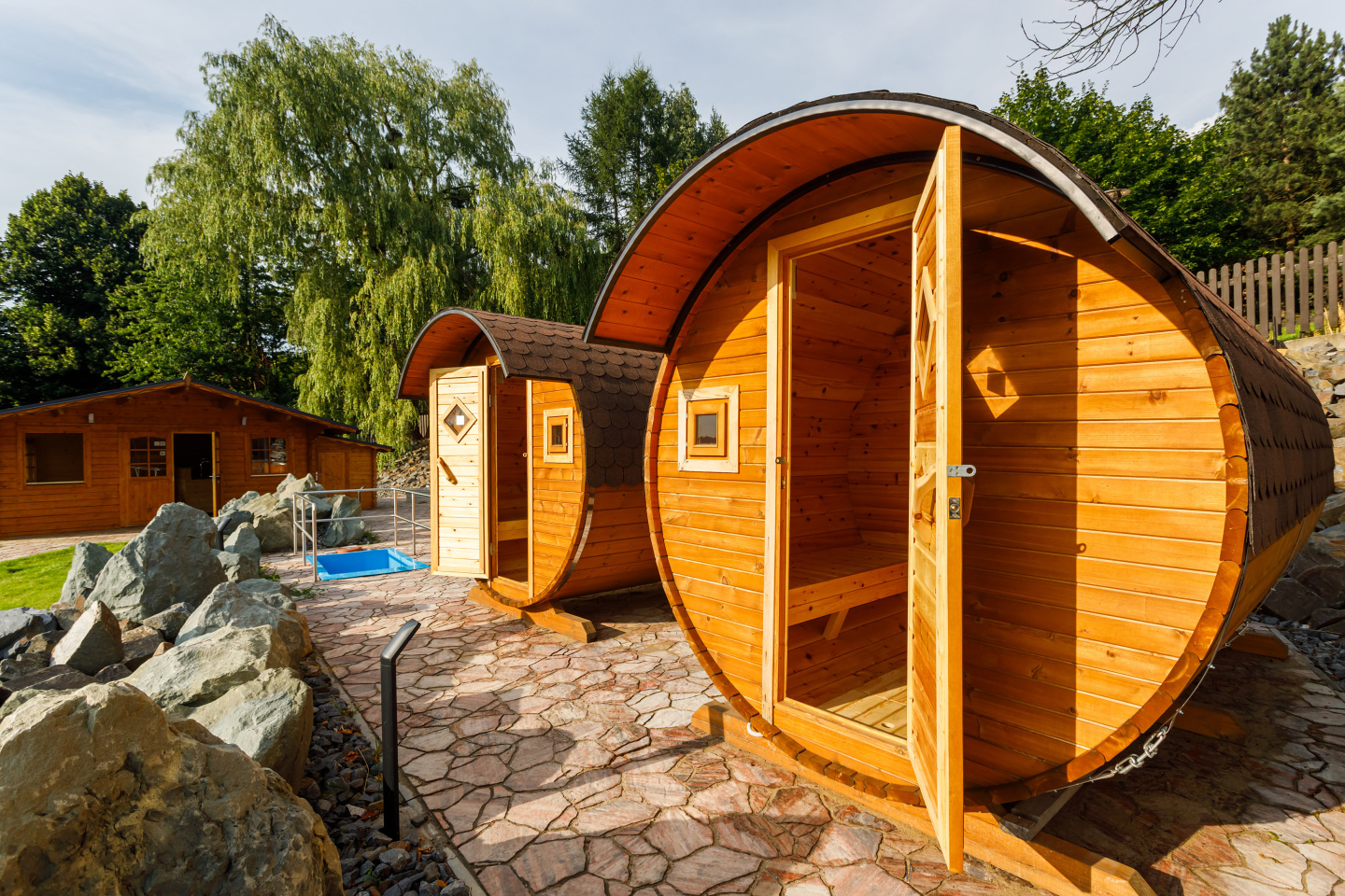 Venkovní sudové sauny nabízí krásný výhled do přírody. Užijte si saunování v příjemném a netradičním prostředí. Dřevo ze severského smrku po zahřátí krásně voní a navozuje pocit příjemné relaxace a klidu. Wellness je přístupný ubytovaným hostům i široké veřejnosti.