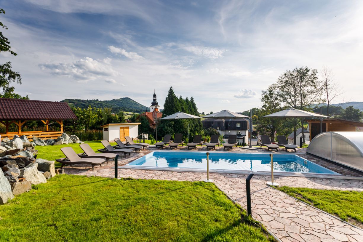 Ideálním místo pro osvěžení a relaxaci v letních měsících. Bazén je k dispozici hotelovým hostům ale i ostatním návštěvníkům našeho penzionu a restaurace.